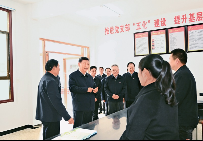 2024年3月18日至21日,中共中央总书记、国家主席、中央军委主席习近平在湖南考察。这是19日下午,习近平在常德市鼎城区谢家铺镇港中坪村党群服务中心了解当地为基层减负、提升基层治理效能等情况。 新华社记者 燕雁/摄