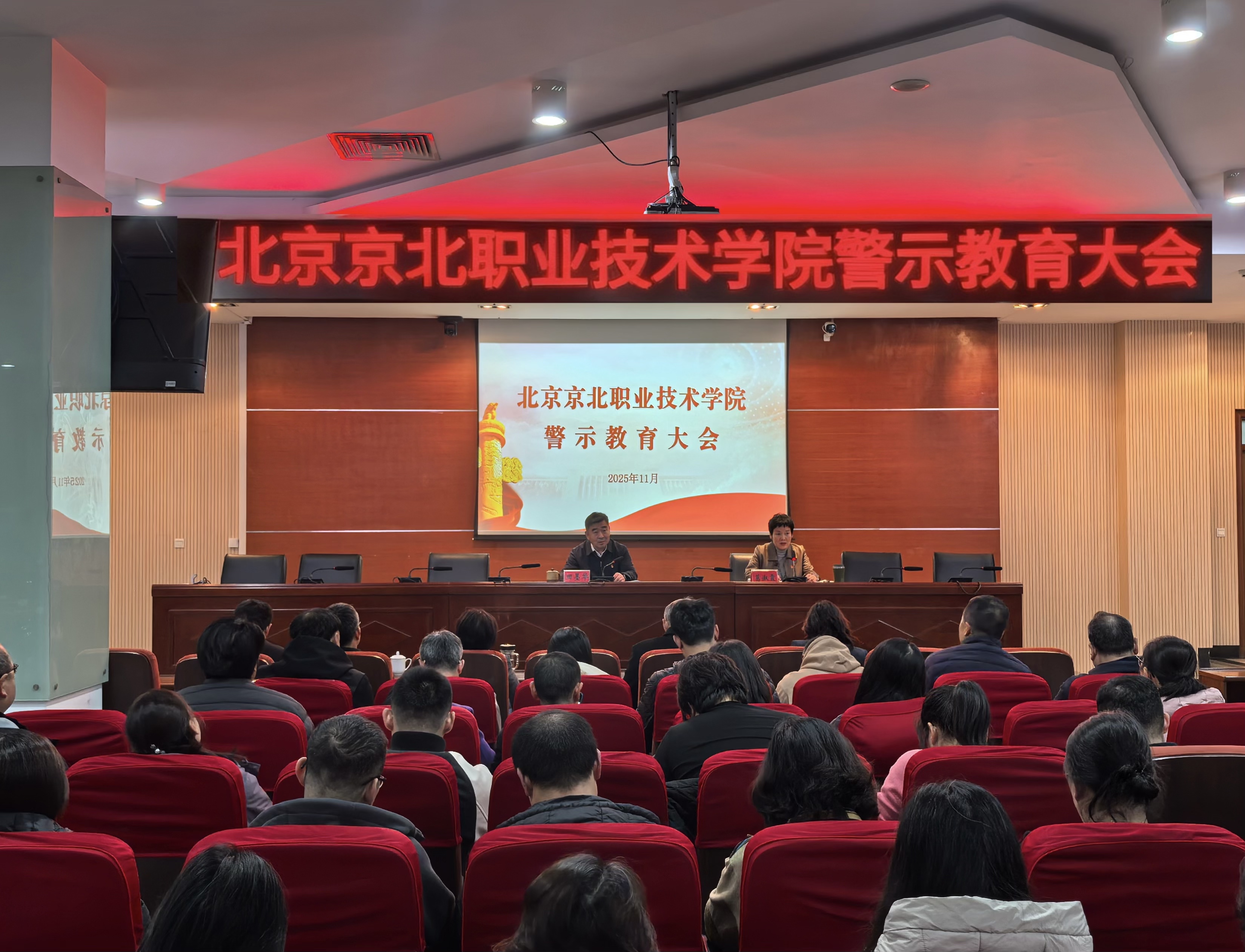 近日,北京京北职业技术学院召开警示教育大会。与会人员集中观看了北京教育系统2025年警示教育大会影片《戒尺高悬 警钟长鸣》。片中触目惊心的案件深刻暴露出个别党员干部理想信念崩塌、纪律意识淡薄、权力观扭曲等严重问题,给在场的每一位党员同志敲响了沉重的警钟。